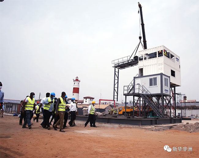 據(jù)悉,中國援加納漁港綜合設(shè)施項(xiàng)目是中國援建的重大民生基礎(chǔ)設(shè)施建設(shè)項(xiàng)目,建成后將成為加納共和國首都阿克拉地區(qū)的大型綜合性漁港,能夠明顯改善當(dāng)?shù)貪O民的作業(yè)和生活條件,包括為漁民提供安全的靠泊卸魚、漁船維修,水產(chǎn)品儲(chǔ)存、交易、生產(chǎn)加工等功能。